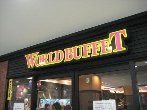 バイキングレストラン「ワールドビュフェ」でランチです、バイキングと言えばゴン太君、いよいよ転勤前の最終かな~ 前金制で料金払って座席カードをもらいます,時間無制限~(*^^)v 土日限定、ビーフストロノガノフ引き換え券(後で後悔する事になるのですが…