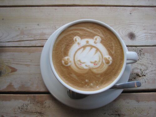 日田のアラスカンカフェでラテです お邪魔します~ 9月に続いて今年は2回目の訪問になります 何時もの席へ ラテのホットでお願いしました しばし~待ってラテです (*^^)vいいなぁ~癒されます 生チョコ(≧▽≦)美味! ラテを飲んでると~お隣のテーブル席からバ…