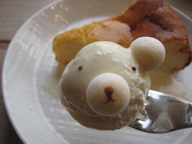 チーズケーキのくまさんめちゃかわいいです、アイスクリームで作られてますね
