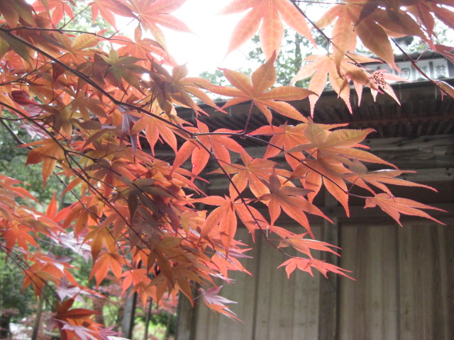 こちらは薬師堂、赤い紅葉(のむらもみじ)が映えます