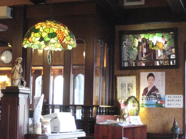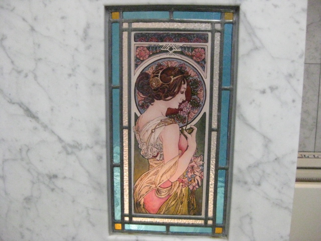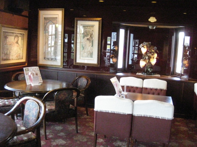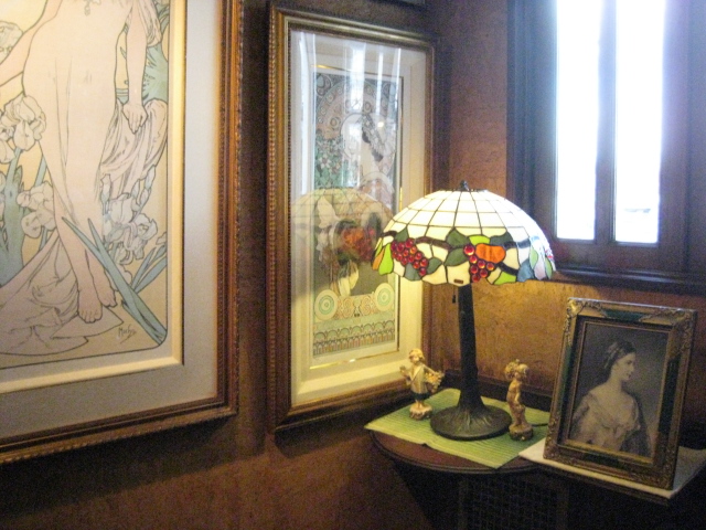 照明も素敵ですが~何と言ってもマスターの趣味のアルフォンスミシャのリトグラフ