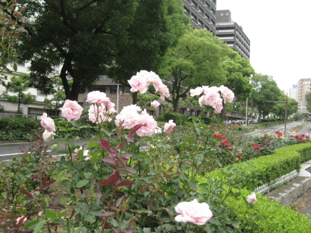 さて兵庫県庁まで戻ります、すると~山手幹線沿いにバラ園が有りました