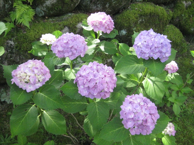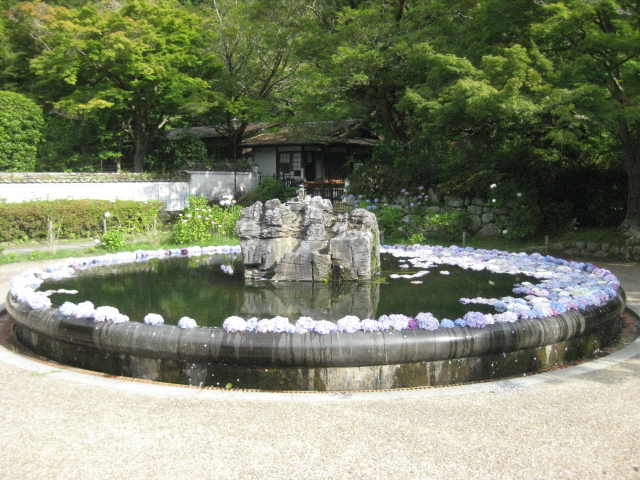 久安寺の紫陽花を観に行きました、丸い池には紫陽花が浮かんでいます