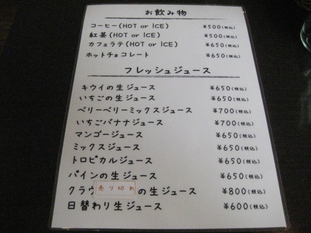 コーヒーなら500円ですが~+150円でジュースに変更できます、ジュースは色々有りますが~イチゴにします