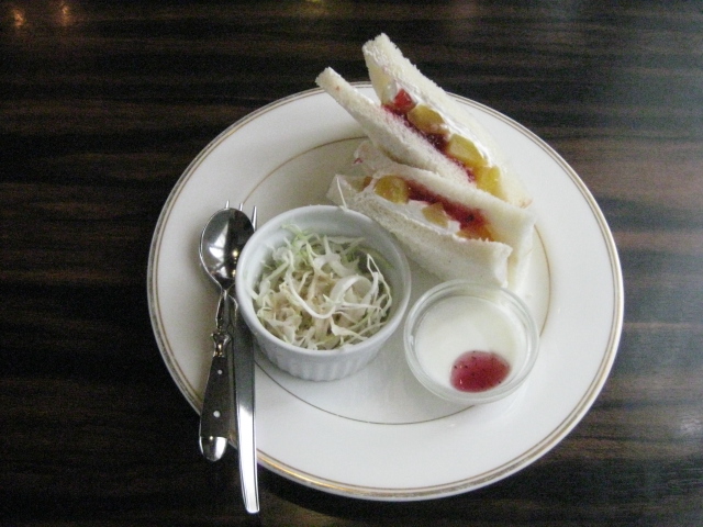 こちらのモーニングはスゴク充実しているんです、迷って~きっさてんではレアなフルーツサンドにしました