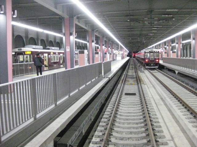 西宮北口から宝塚線へ、宝塚駅で梅田行へ乗り換えます、宝塚駅は終着駅なのでホームの端から乗り換え可能です