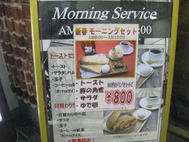 さて正月価格のモーニングですが、いつもはJR側の店舗に入店していたんですが~今回はフルーツに負けて阪急電車側に入店します